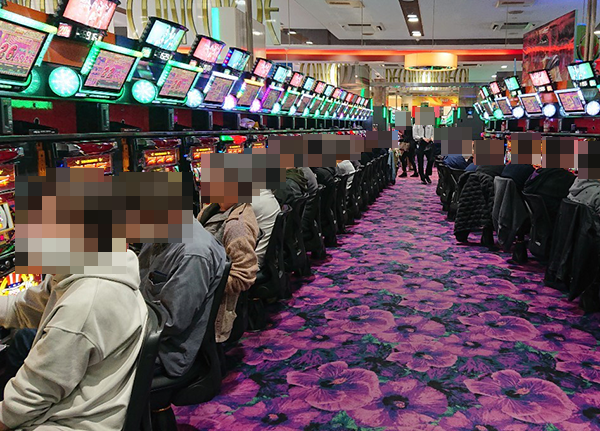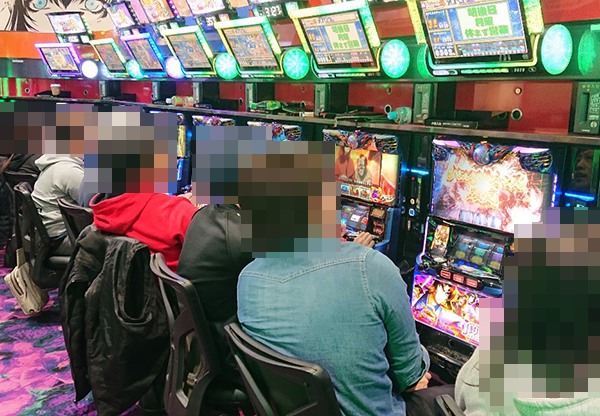 滞在時は、設置されている15台がすべて稼働。空き台がでる場面はあったが、すぐにほかのプレイヤーが席を確保して遊技をおこなっていた。期待を持っているためか、表情がイキイキとしていたことも覚えている。