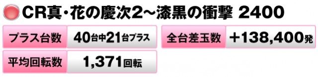 パチンコでは、『CR真・花の慶次2〜漆黒の衝撃 2400』が圧倒的な強さを見せた。