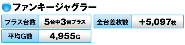 5台中3台がプラスで全台差枚数は+5,097枚と、パワーのあるところをアピールした。