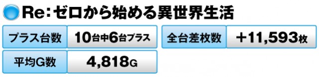 10台中6台がプラスで全台差枚数は+11,593枚だった。