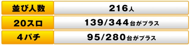 パチンコ全体では、280台中95台がプラスで、トータルの差玉数は+79,370発という結果だった。