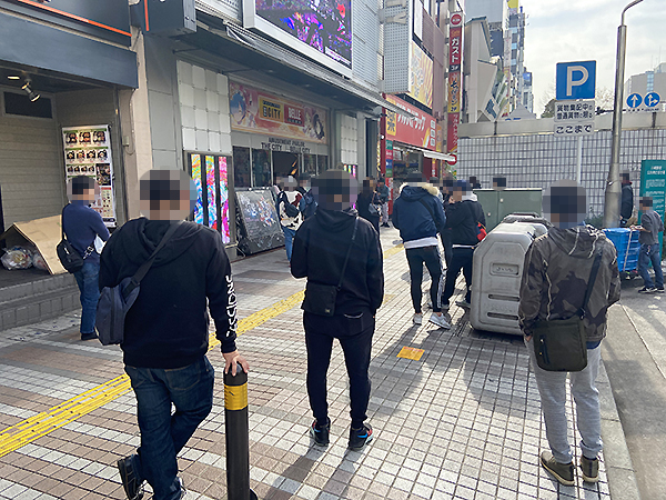 開店前から大勢のプレイヤーが集合。会話を楽しみながら入店を待つ、実に和やかなシーンを目にしている。