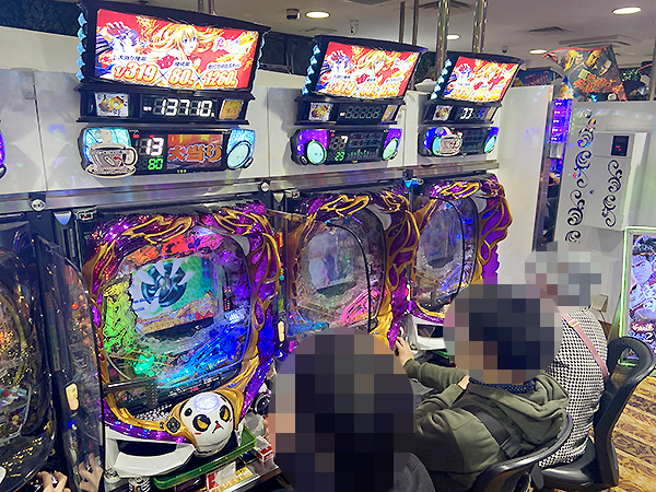 14時半過ぎの4.16円パチンコをチェックすると、「CRフィーバー戦姫絶唱シンフォギア」や「P地獄少女四」で好調なプレイヤーを確認。時折見せる嬉しそうな表情が印象に残っている。