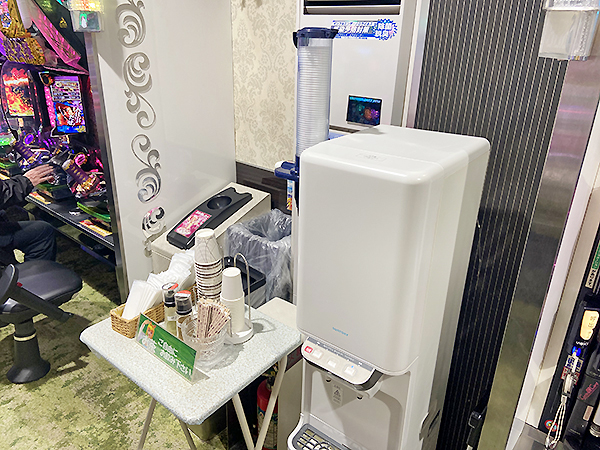 店内には自由に利用できるウォーターサーバーが設置されており、いつでものどを潤すことができる。