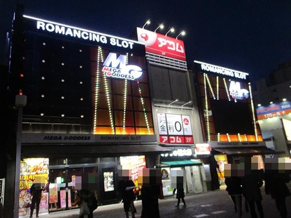 3月2日に「双龍」をおこなったのは、千葉県船橋市の「MEGA GODDESS」。さまざまなスペックの機種が導入されているパチスロ専門店だ。
