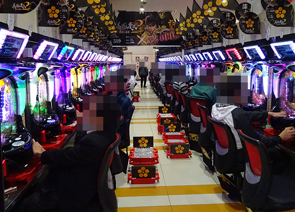 滞在時に稼働していたのは19台。空き台はあったものの、プレイヤーが披露するパフォーマンスによって、稼働率を上回るほどに盛況だ。