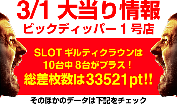 3月1日の「ビックディッパー新橋1号店」で、とくに目立ったのは『SLOTギルティクラウン』。