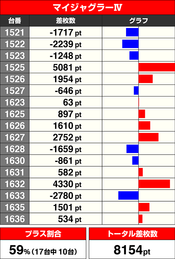『マイジャグラーⅢ』と『マイジャグラーⅣ』も半数を超える台がプラス。