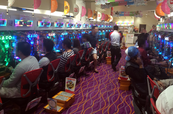 夕方付近になると全体的に稼働が高くなり、パチスロコーナーは「押忍!サラリーマン番長」、「パチスロ戦国BASARA3」、「やじきた道中記乙」、「パチスロ鉄拳3rd」などなど、人気機種はすべて満席。