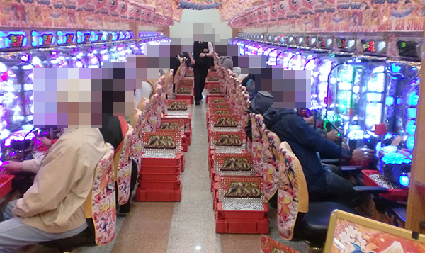 支持を受けていた機種に昨日と大きな違いはなく、4円パチンコでは「CR牙狼 魔戒ノ花」や海物語シリーズが盛況。