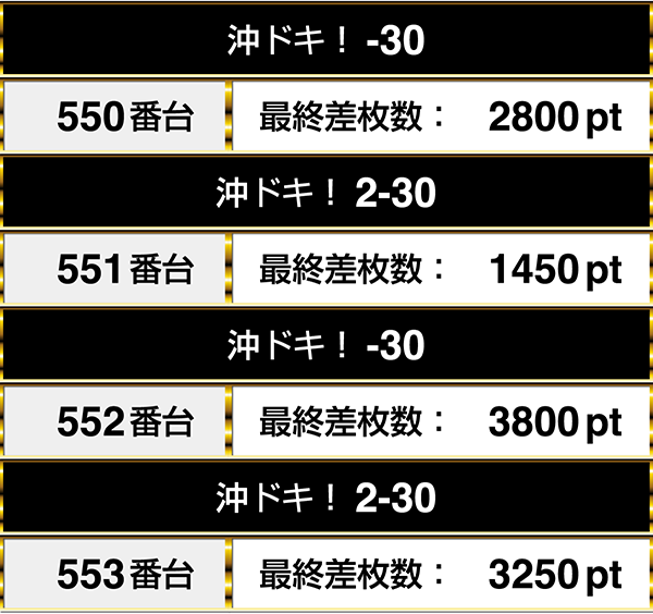 最終的には4台が連なってプラスptを記録。全台が1000ptを上回り、2台は3000pt以上であった。