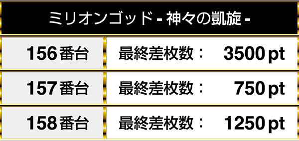 3500ptの台があった『ミリオンゴッド-神々の凱旋-』は3台が並んでプラスpt!