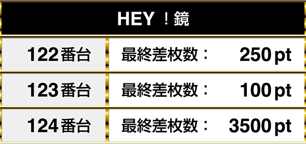 『HEY!鏡』の3台が並んでプラスptとなり、1台は3500pt!!