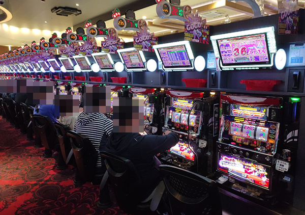 パチスロコーナーに足を踏み入れると、さまざまな機種に笑顔をみせるプレイヤーの姿があった!!