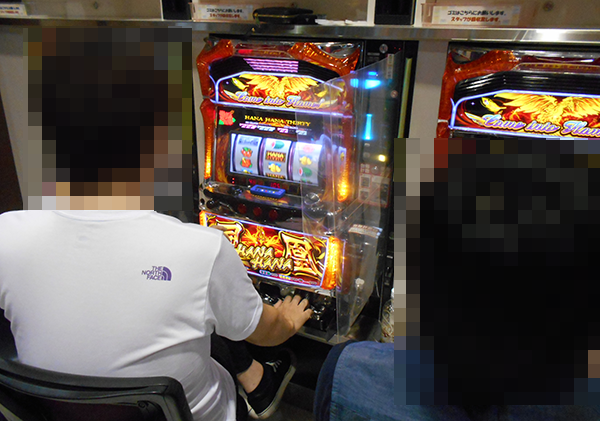 4台中3台が稼働し、うれしそうなプレイヤーが並んでいた「ハナハナ鳳凰-30」だ。