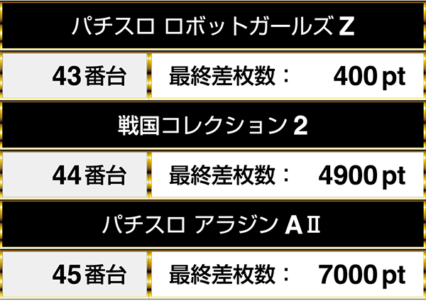 閉店時には『パチスロ ロボットガールズZ』と『戦国コレクション2』、『パチスロ アラジンAⅡ』の3台が並んでプラスpt!!