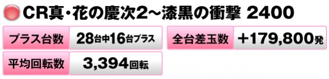 28台のうち半数以上の16台がプラスで、全台差玉数は+179,800発を記録した。