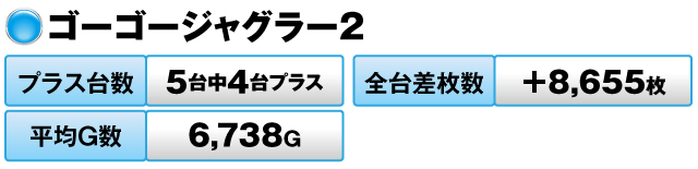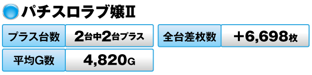 2台すべてがプラスで全台差枚数は+6,698枚をマークしている。