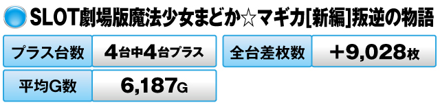 こちらも4台すべてがプラスで全台差枚数は+9,028枚だった。