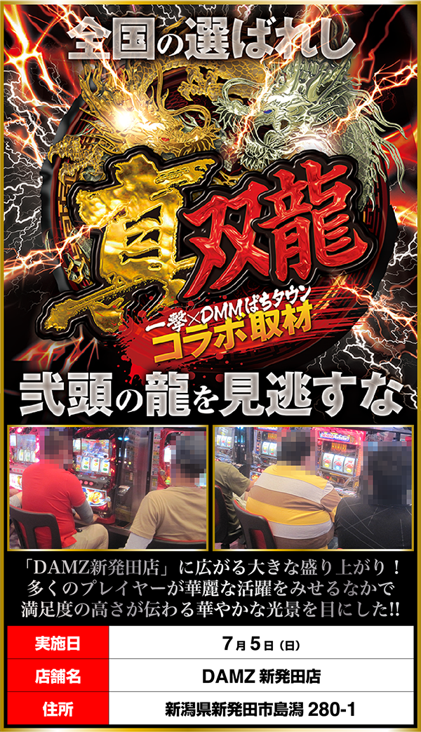 入店時からホールをあとにするときまで、華やかな雰囲気が感じられた「DAMZ新発田店」。晴れやかな気分で龍の存在を探っていった「真双龍」となった。