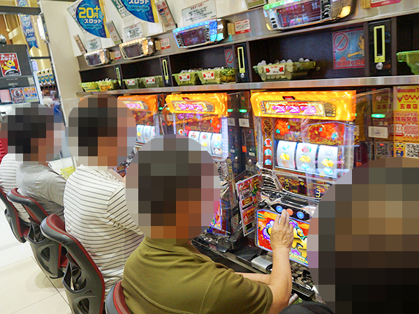 開店直後は1000円/46枚パチスロの人気が高く、「ツインドラゴンハナハナ‐30」や「沖ドキ!-30」といった沖スロを中心に席が埋まっていた。
