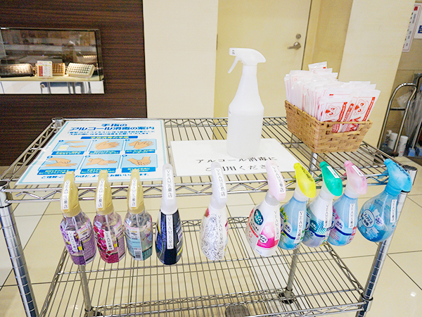 店内には除菌・消臭スプレーやおしぼりなどアメニティグッズが充実しており、より快適に楽しむことができる。