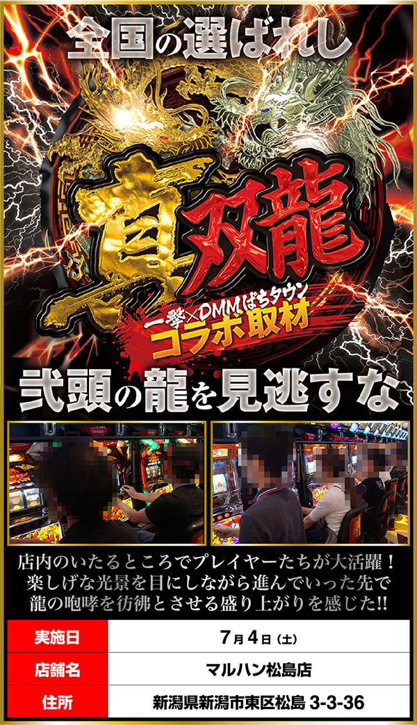 「マルハン松島店」を舞台に「真双龍」を敢行した。