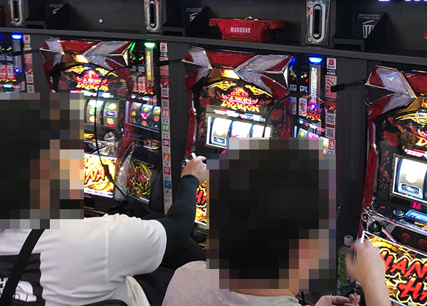「ツインドラゴンハナハナ‐30」をはじめ、多数の機種が盛況であった「マルハン東三条店」。
