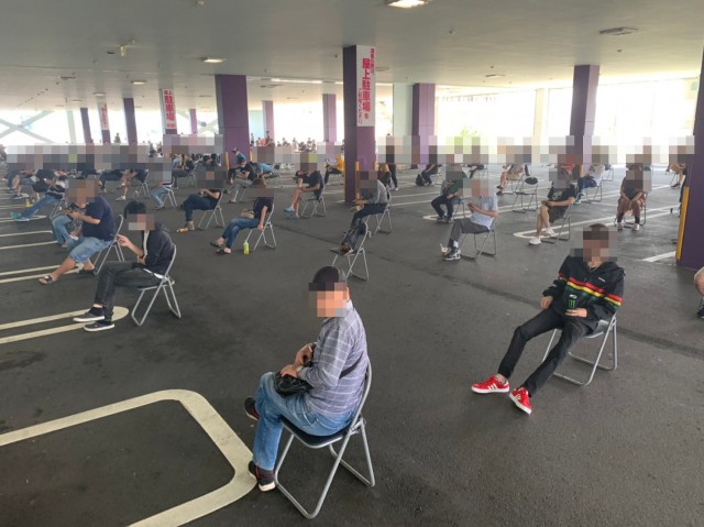 駐車場をフルに使って並びが密にならないようにするなど、新型コロナウイルス対策も十分。