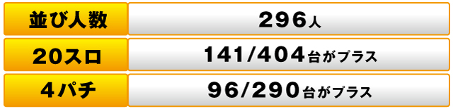 パチスロ全体では、404台中141台がプラスという結果で、多くの英雄が誕生したのであった。