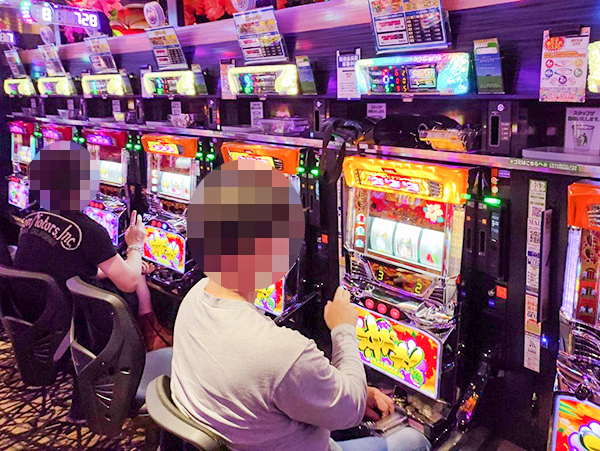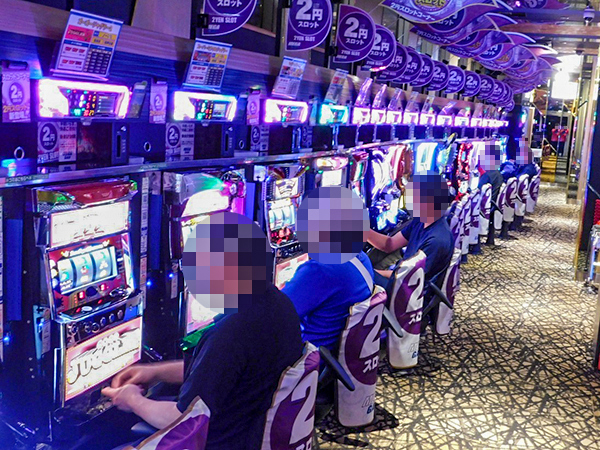 5円・2円パチスロでは理想的な展開を迎えたプレイヤーを多数目撃。シマ全体が明るい雰囲気に包まれていた。