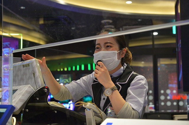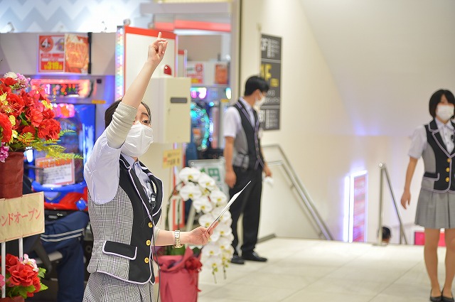 グランドオープンするホールならではの綺麗さと快適さはもちろんのこと、各台に設置された飛沫防止の仕切りや、遊技しながら加熱式タバコが利用できる2階のパチスロフロア、そして女性専用喫煙スペースなど、あらゆるファンのニーズに対応している様子。