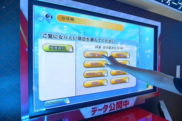 気になる台のデータが、サクサクッとチェックできるモニターを設置。