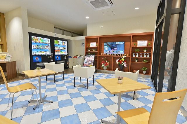 広々として快適な休憩スペース。無料ロッカーも完備され、遊技を楽しむファンへの気配りMAX!