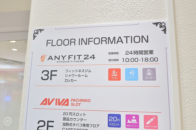 3Fにはスポーツジム「ANY FIT24」も入っている。