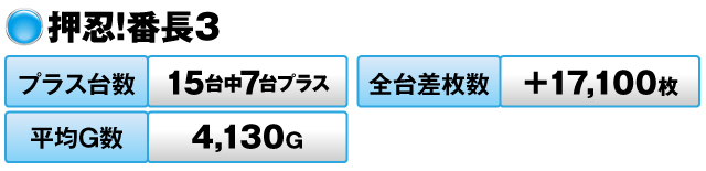 15台中7台がプラスで全台差枚数は+17,100枚をマークした。