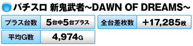 こちらも5台すべてがプラスで、全台差枚数は+17,285枚だった。