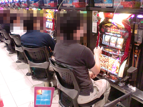 5台中4台が稼働していた「ツインドラゴンハナハナ‐30」。満面の笑みを浮かべているプレイヤーの姿や機種の性能を引き出しているといったシーンなど、印象に残るポイントが多かった。