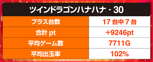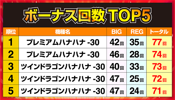 「プレミアムハナハナ‐30」からは2台、「ツインドラゴンハナハナ‐30」からは3台がTOP5入り!