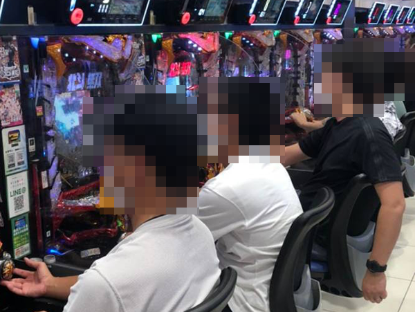 『Pモモキュンソード』や『Pフィーバー戦姫絶唱シンフォギア2』などにも遊技を満喫しているような姿があり、パチンココーナー全体に鮮やかな光景が広がっていた。