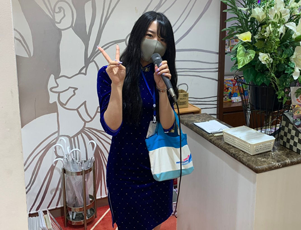 ブルーのチャイナドレス風のコスチュームにお着替えをして、みなさんと一緒に整列中です( ̄▽ ̄)ゞ