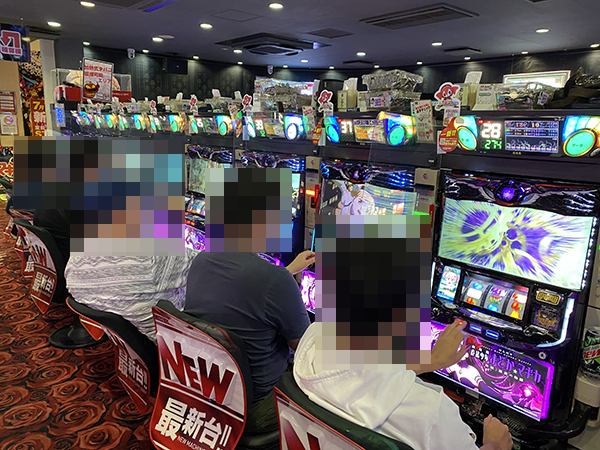 「SLOT劇場版魔法少女まどか☆マギカ[新編]叛逆の物語」への支持も厚く、理想的といえる展開で遊技をおこなっているプレイヤーがズラリと並んでいた。
