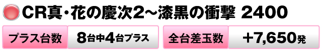 パチンコ全体では、181台中75台がプラスだったものの、トータルの差玉数は-11,460発と、惜しくもプラスには届かなかった。