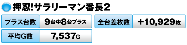 9台中8台がプラスで全台差枚数は+10,929枚を記録した。