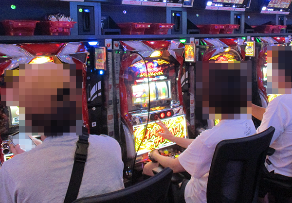 活気のあるシーンのほかに、小役を数えているプレイヤーやこまめにデータ表示機をチェックしている姿も確認。笑みを浮かべていたことも覚えている。