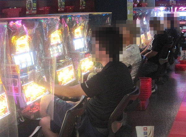 パチスロコーナーでは、設置台数やスペックを問わずに、さまざまな機種が好評。シマを移動するたびに遊技を満喫しているような姿がみられ、随所からにぎわいが感じられた。