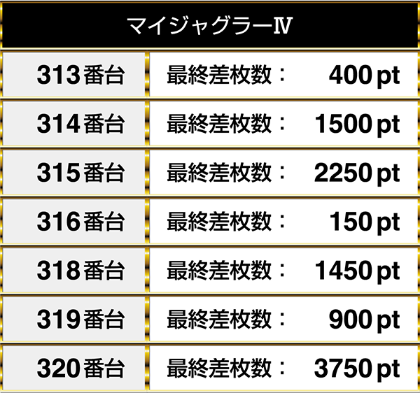最終的には313番台から316番台、318番台から320番台の2箇所にプラスptが並ぶ!!