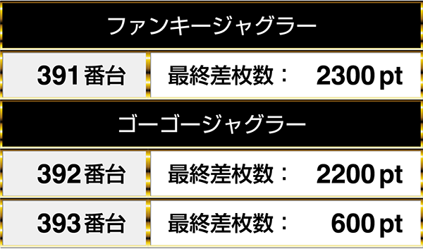 となりにある『ゴーゴージャグラー』の2台をあわせると、3台が並んでプラスpt!!