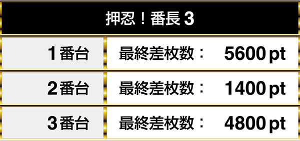 『押忍!番長3』は3台が連なってプラスptとなり、すべてが1000pt以上を記録した。