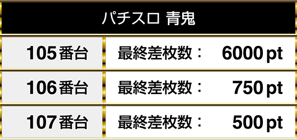 『パチスロ 青鬼』は3台が並んでプラスptを記録し、1台が6000pt!